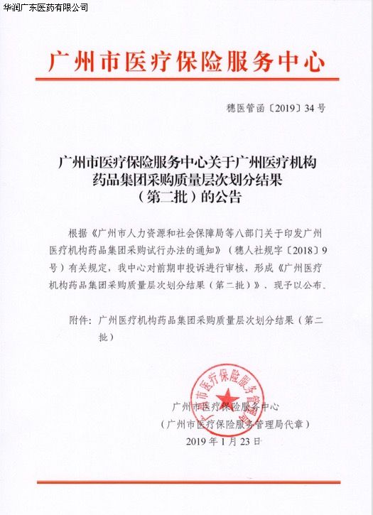 【轉(zhuǎn)廣州GPO】廣州市醫(yī)療保險服務(wù)中心關(guān)于廣州醫(yī)療機構(gòu)藥品集團采購質(zhì)量層次劃分結(jié)果(第二批)的公告