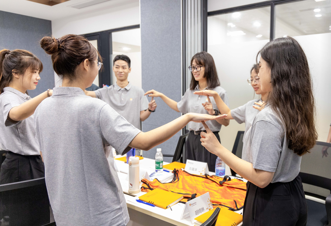 破冰環(huán)節(jié),由學(xué)員組建的小組進(jìn)行團(tuán)隊(duì)展示,從隊(duì)形、口號、繪圖三個維度進(jìn)行展示,充分體現(xiàn)了他們對即將在華潤開啟的職場生活的熱情與沖勁。素質(zhì)拓展環(huán)節(jié),不僅僅考驗(yàn)了他們的反應(yīng)能力、競爭意識,更是一次團(tuán)結(jié)互助、合作共贏的新體驗(yàn)。培訓(xùn)還設(shè)置了翻轉(zhuǎn)課堂環(huán)節(jié),通過重新建構(gòu)學(xué)習(xí)流程,使學(xué)員逐漸成為學(xué)習(xí)的主角,化被動為主動。