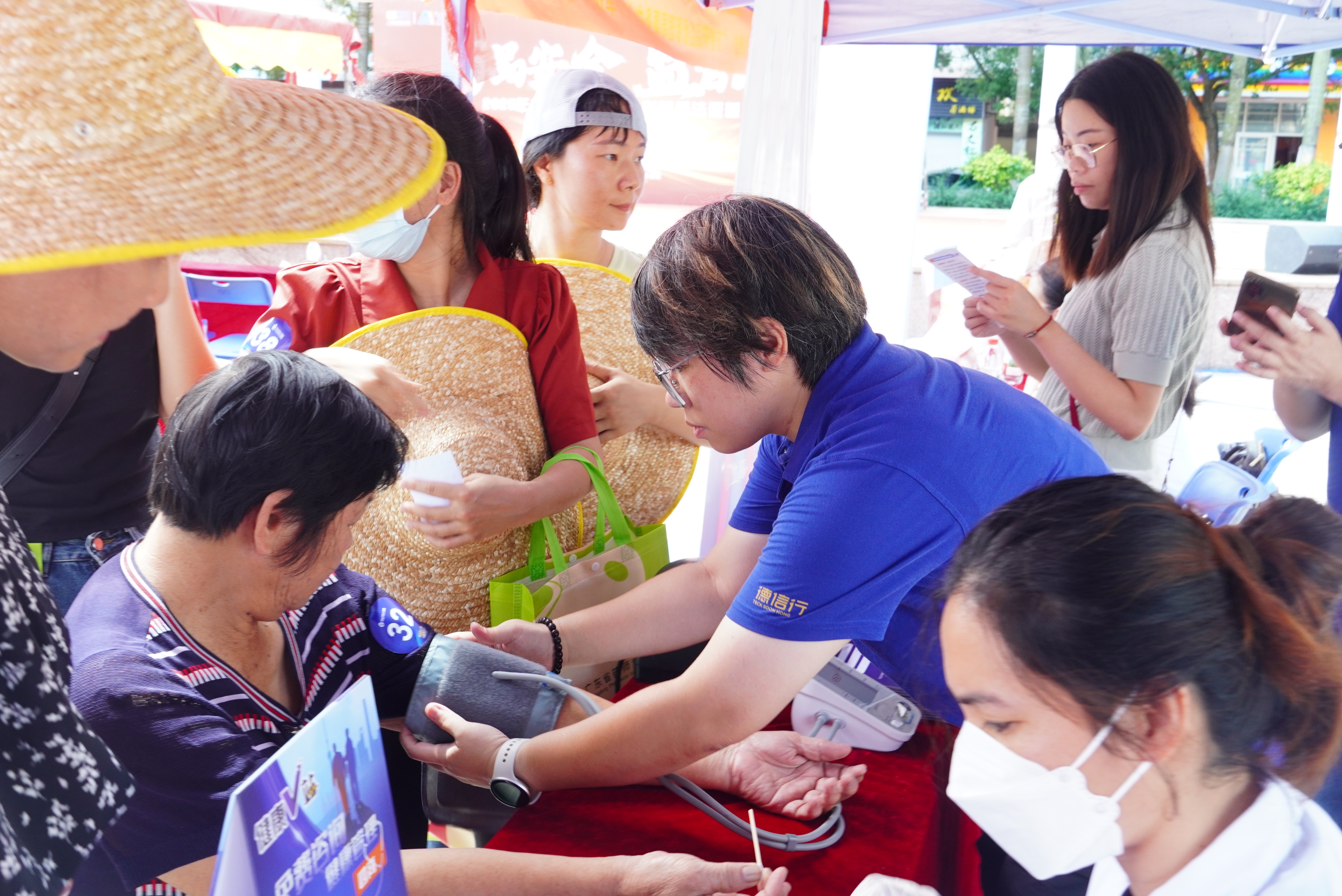活動設(shè)置健康檢測、藥師咨詢等專業(yè)服務(wù)攤位。檢測人員一邊熟練地為群眾綁好血壓計、采集指尖血,一邊輕聲安撫群眾:“您別緊張,放松一點,馬上就好。”很快,一張張標(biāo)注著血壓、血糖數(shù)值的檢測單遞到群眾手中。隨后專家結(jié)合檢測數(shù)據(jù),為每位群眾量身定制個性化健康建議。