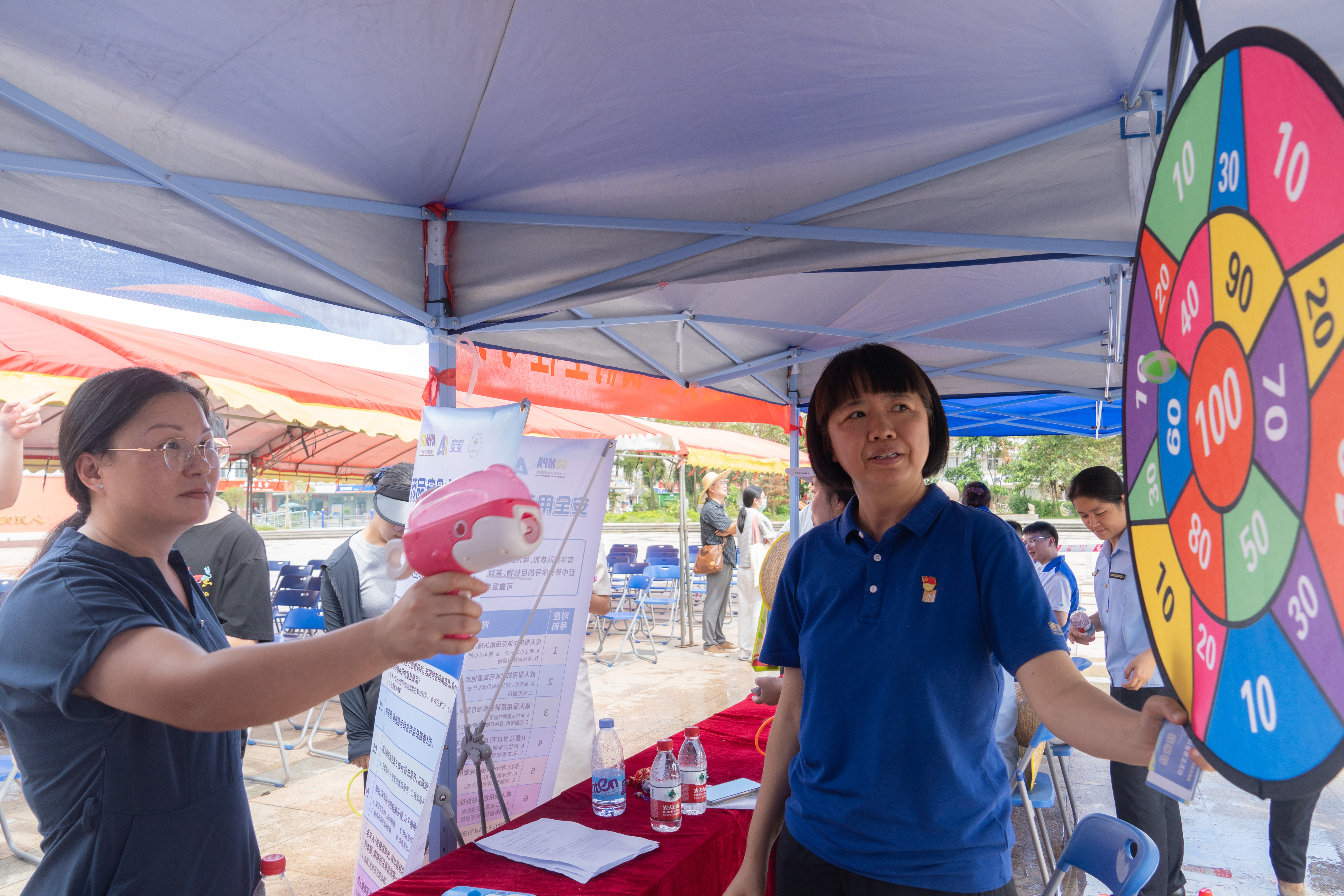 活動還設(shè)置中藥香囊制作、醫(yī)療器械體驗、藥品安全用藥知識大挑戰(zhàn)等趣味互動環(huán)節(jié)。“用粘粘球射中目標(biāo)就能答題贏獎品,還能親手做中藥香囊。這樣學(xué)藥品安全知識太有趣了!”一位群眾笑著分享體驗。在輕松的互動中,藥品安全知識也潛移默化地融入群眾心中。