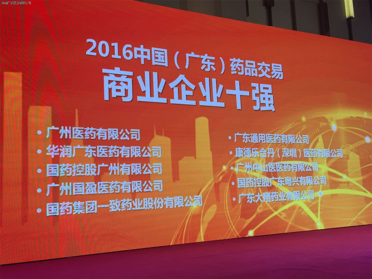 大會(huì)最后進(jìn)行2016年度廣東藥品交易優(yōu)秀會(huì)員排行榜頒獎(jiǎng)典禮,華潤(rùn)廣東醫(yī)藥有限公司位列“2016中國(guó)(廣東)藥品交易商業(yè)企業(yè)十強(qiáng)”第二位。