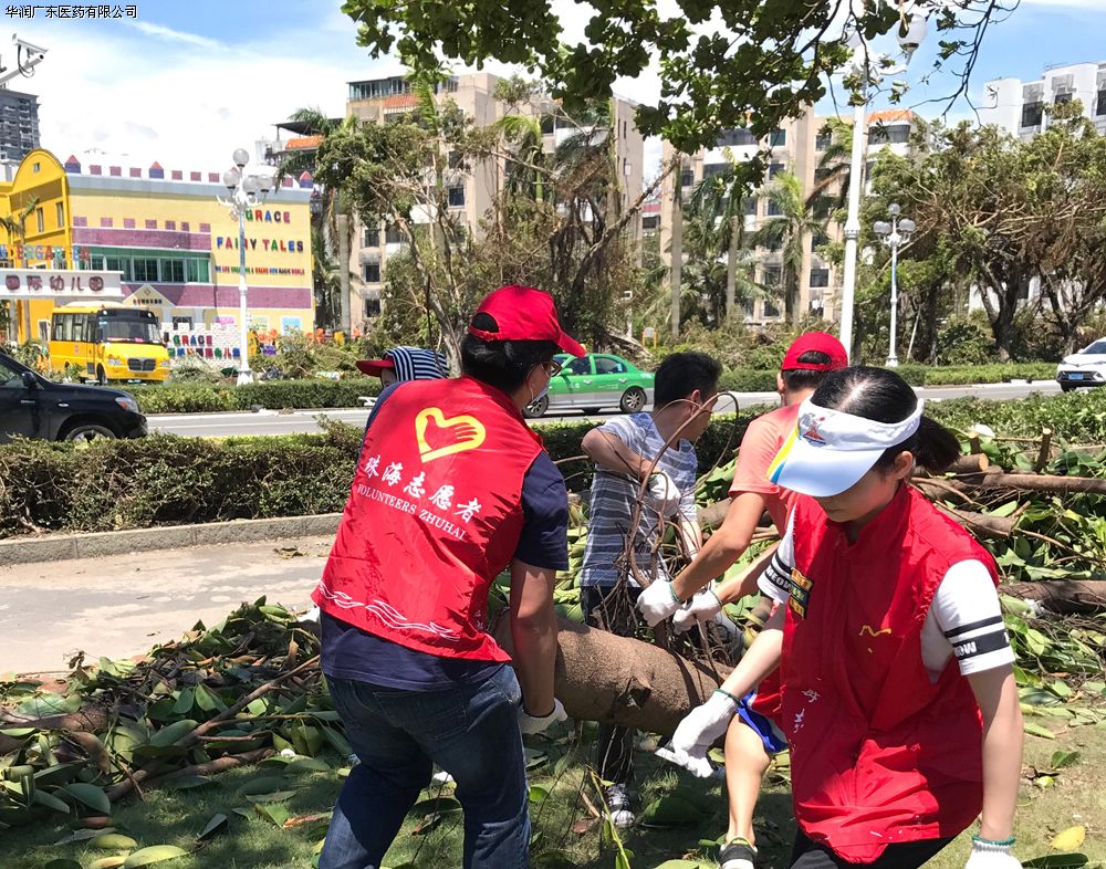 臺風過后,珠海市多處環(huán)境遭受到自然災害的破壞。華潤珠海醫(yī)藥的同事們利用周六休息時間自發(fā)組織了一支義工隊伍,參加珠海市交通指引、路面清理等志愿者服務。同事們不顧烈日曝曬,盡管大汗淋漓、口干舌燥依然不知疲倦地在烈日下忙碌著,只為能給這片經受創(chuàng)傷的城市付出自己微薄的力量。