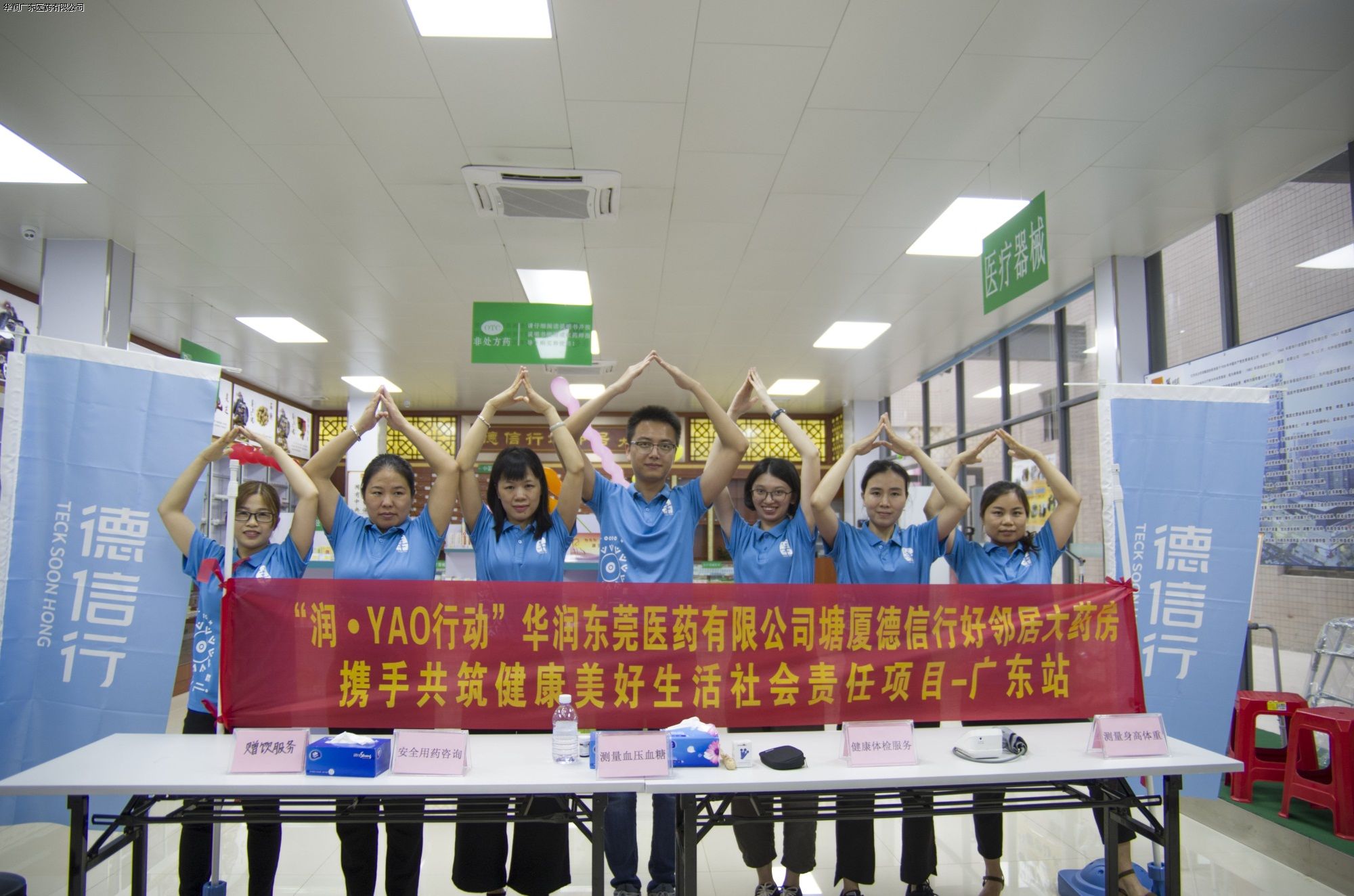 為了弘揚(yáng)和傳承華潤(rùn)文化,踐行央企社會(huì)責(zé)任,同時(shí)積極響應(yīng)“健康扶貧中國(guó)行暨慶祝華潤(rùn)80周年華誕” 暨“潤(rùn)•YAO行動(dòng)"活動(dòng)號(hào)召,7月21日及7月27日,華潤(rùn)東莞醫(yī)藥零售業(yè)務(wù)板塊的寮步及塘廈兩家德信行大藥房工作人員攜手華潤(rùn)東莞醫(yī)藥黨支部黨員們和同事們組成的志愿者隊(duì)伍,分別開(kāi)展了兩場(chǎng)社會(huì)責(zé)任活動(dòng)——寮步敬老院開(kāi)展關(guān)愛(ài)老人健康義診活動(dòng)、及在塘廈便民藥房開(kāi)展“攜手共筑健康美好生活”的社區(qū)義診活動(dòng),給長(zhǎng)者們和社區(qū)居民提供專業(yè)的健康體檢服務(wù),并送上科學(xué)用藥安全理念和知識(shí)。