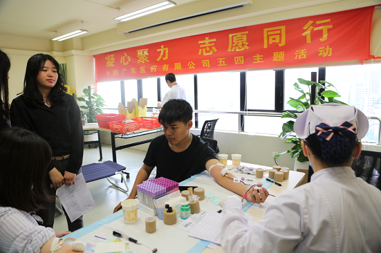 2019年5月10日,“凝心聚力 志愿同行”五四無(wú)償獻(xiàn)血活動(dòng),在華潤(rùn)廣東醫(yī)藥有限公司順利舉行。此次活動(dòng)由廣州血液中心的醫(yī)務(wù)人員們提供獻(xiàn)血服務(wù)支持,共有57位同事成功獻(xiàn)血,合共采集血液15600毫升。