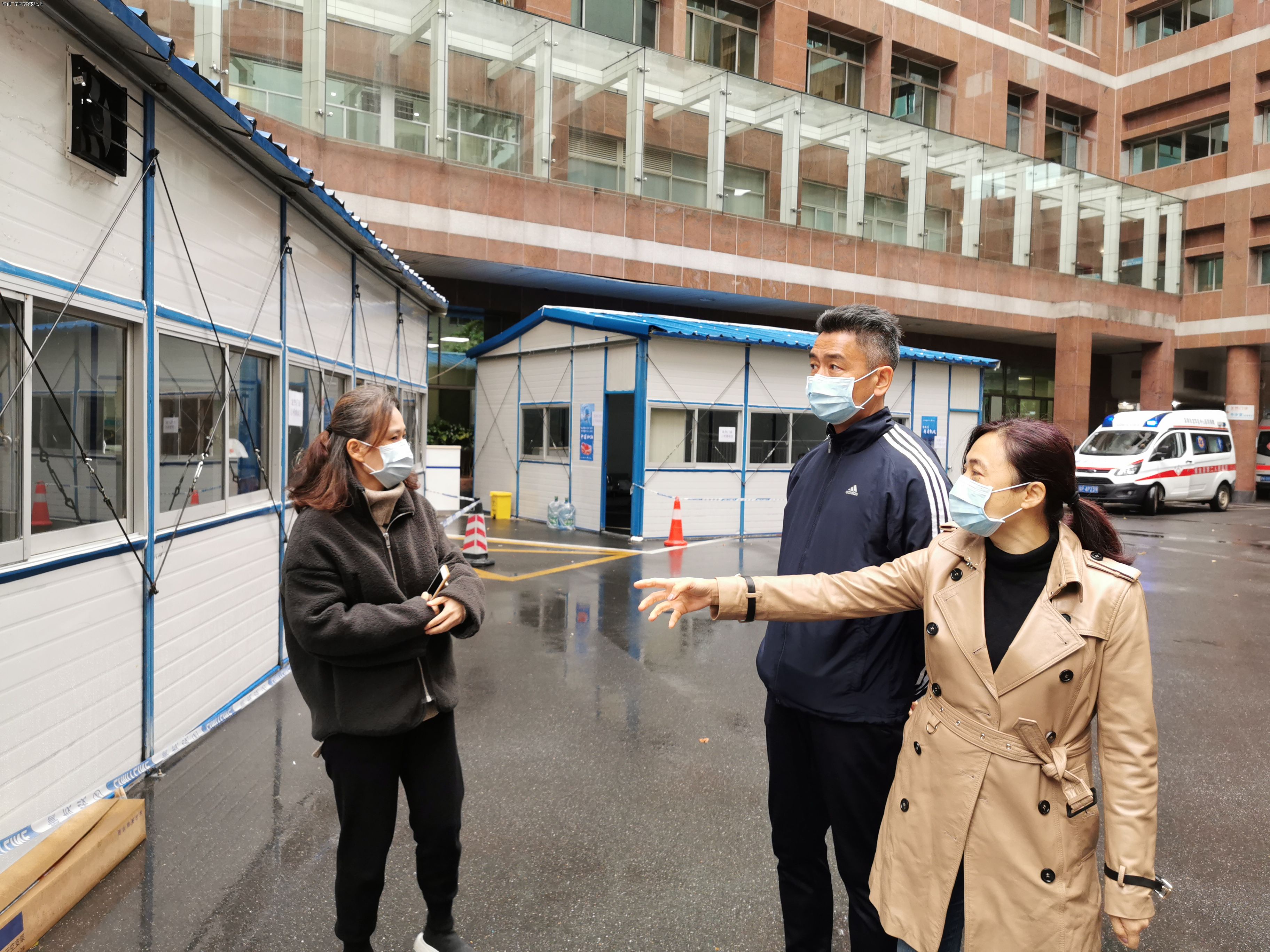 隨后,韓總還視察了公司協(xié)助廣東省人民醫(yī)院搭建的發(fā)熱門診板房。廣東省人民醫(yī)院作為廣東省級新型冠狀病毒感染肺炎的定點(diǎn)救治醫(yī)院,所有醫(yī)務(wù)人員已投入緊張的病患救治中。為做好病毒感染的防控工作,降低就診患者的院感風(fēng)險,公司與醫(yī)院通力協(xié)作,在不到48小時內(nèi),搭建完成兩座100平米并配備空調(diào)和空氣消毒機(jī)的發(fā)熱門診板房。華潤廣東醫(yī)藥與醫(yī)院一起,并肩抗擊疫情。
