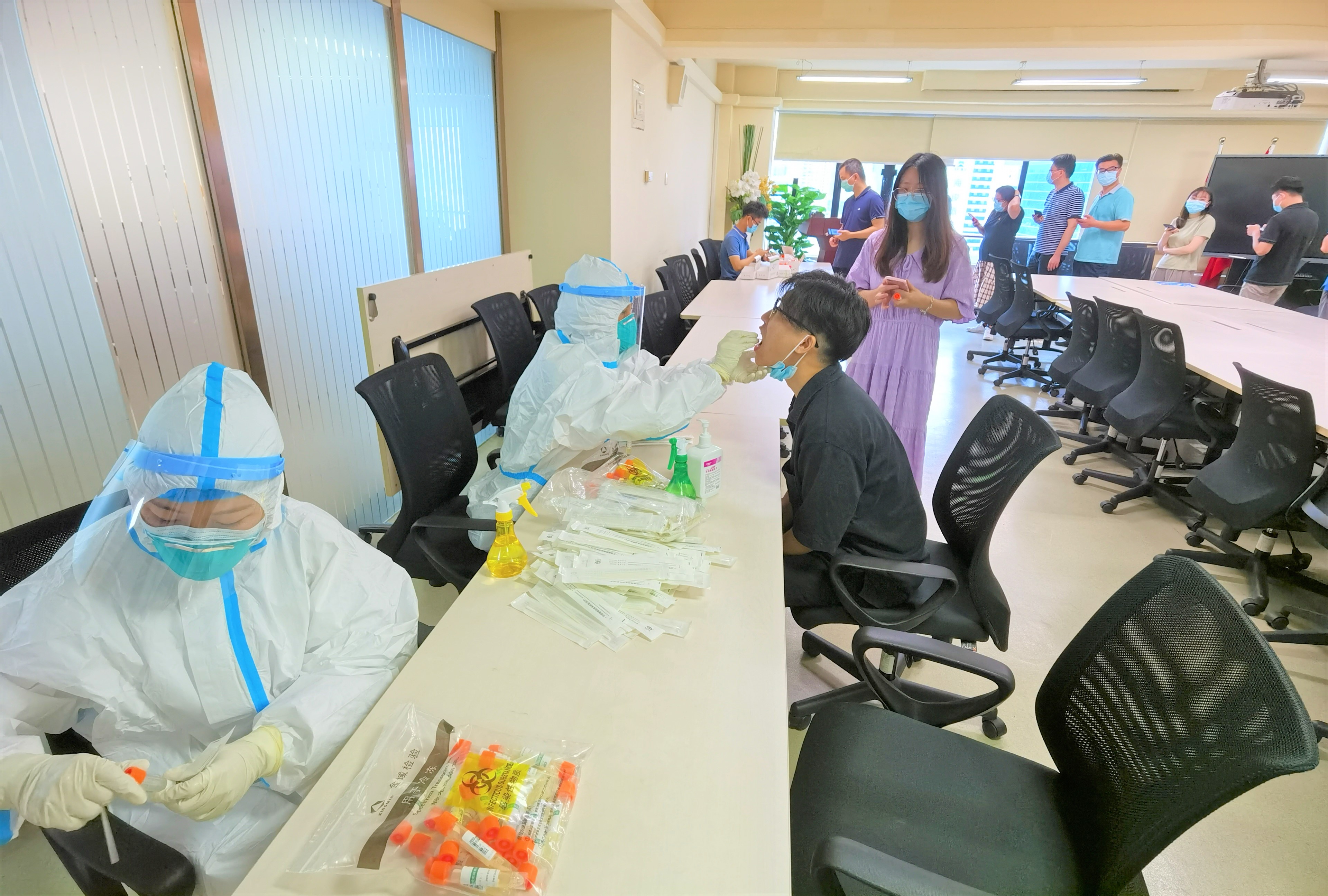 “你在前線流汗,我在后方補(bǔ)水”。由于核酸檢測現(xiàn)場酷暑難耐,為保障抗疫一線工作人員物資補(bǔ)給,華潤廣東醫(yī)藥與下屬廣東德信行大藥房調(diào)配華潤怡寶飲用水,支援各個核酸檢測取樣點(diǎn)一線,為疫情防控不辭辛勞的工作人員加油鼓勁?!搬t(yī)護(hù)人員比我們辛苦,我們也是盡自己的綿薄之力”,志愿者說,可以支援一線的工作者,能夠?yàn)榭箵粢咔樽鳇c(diǎn)貢獻(xiàn),就感覺渾身充滿了力量。